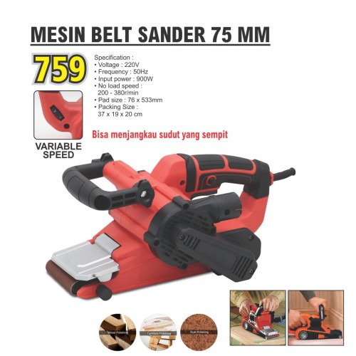 Specification : • Voltage : 220V • Frequency : 50Hz • Input power : 900W • No load speed : 200 - 380r/min • Pad size : 76 x 533mm • Packing Size : 37 x 19 x 20 cm