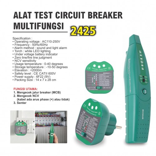 Specification : • Operating voltage : AC110-250V • Frequency : 50Hz/60Hz • Alarm method : sound and light alarm • Torch : white LED lighting • Under voltage battery indicator • Zero line/fire line judgment • NCV sensitivity • Usage temperature : 0-40 degrees • Storage temperature : -10-50 degrees • Elavation :