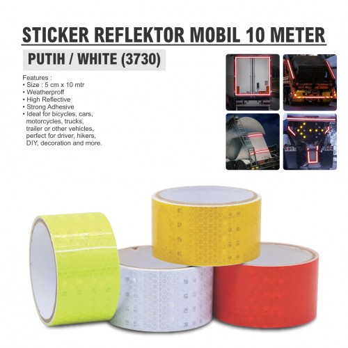 Features : • Color : White • Size : 5 cm x 10 mtr • Weatherproff • High Reflective • Strong Adhesive • Ideal for bicycles, cars, motorcycles, trucks, trailer or other vehicles, perfect for driver, hikers, DIY, decoration and more.