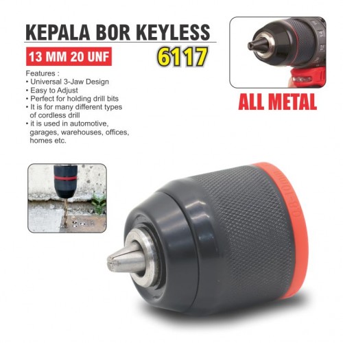 13 MM 24 UNF Features : • Universal 3-Jaw Design • Easy to Adjust • Perfect for holding drill bits • It is for many different types of cordless drill • it is used in automotive, garages, warehouses, offices, homes etc.