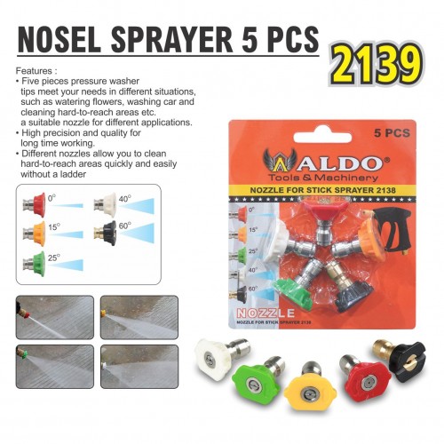 Features : • Five pieces pressure washer tips meet your needs in different situations, such as watering flowers, washing car and cleaning hard-to-reach areas etc. a suitable nozzle for different applications. • High precision and quality for long time working. • Different nozzles allow you to clean hard-to-reach areas quickly and easily without a ladder