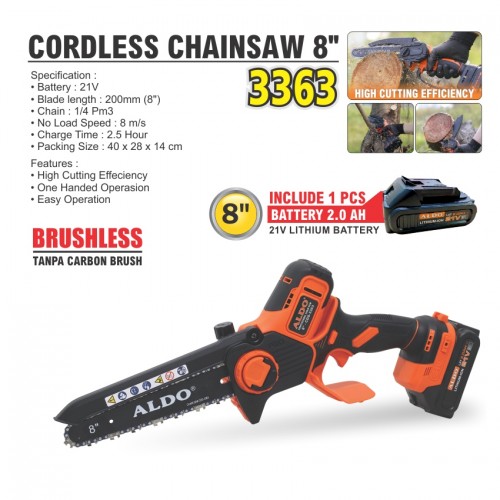 AL-CORDLESS CHAIN SAW 8" CDS-3363 BRUSHLESS