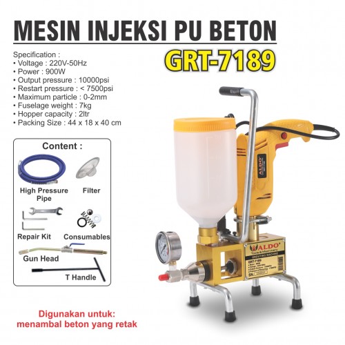 • Voltage : 220V-50Hz • Power : 900W • Output pressure : 10000psi • Restart pressure : < 7500psi • Maximum particle : 0-2mm • Fuselage weight : 7kg • Hopper capacity : 2ltr