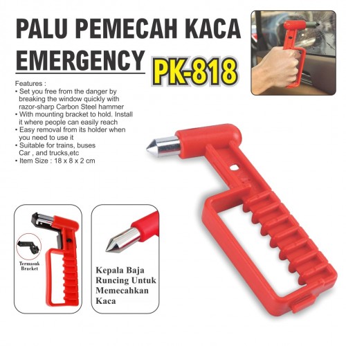 Features : • Set you free from the danger by breaking the window quickly with razor-sharp Carbon Steel hammer • With mounting bracket to hold. Install it where people can easily reach • Easy removal from its holder when you need to use it • Suitable for trains, buses Car, and trucks,etc • Item Size: 18 x 8 x 2 cm
