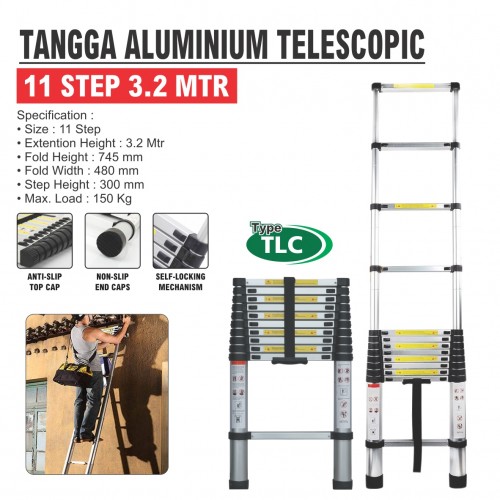 Specification : • Size : 11 Step • Extention Height : 3.2 Mtr • Fold Height : 745 mm • Fold Width : 480 mm • Step Height : 300 mm • Max. Load : 150 Kg