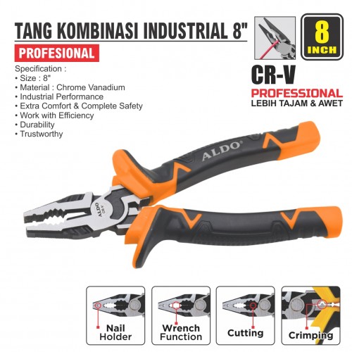 Specification : • Size : 8" • Material: Chrome Vanadium • Industrial Performance • Extra Comfort & Complete Safety • Work with Efficiency • Durability • Trustworthy
