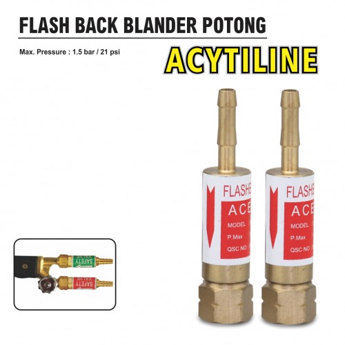 Alat yang berfungsi mencegah tekanan balik dari gas ke tabung yang menyebabkan kebakaran Model : 588 for torch P.max : 1.5 bar / 21 psi Quantity : 10 pcs / ktk