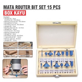 AL-ROUTER BIT SET 15 PCS BOX KAYU