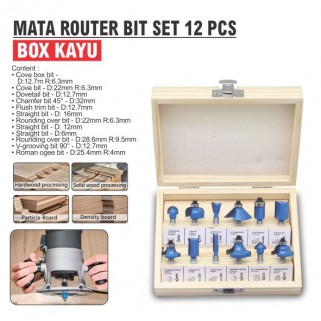 AL-ROUTER BIT SET 12 PCS BOX KAYU