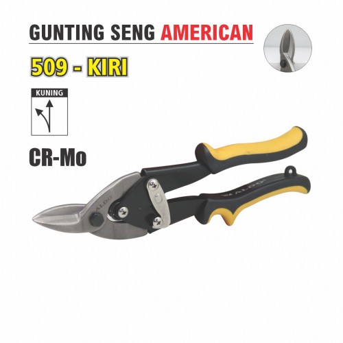 Gunting kombinasi untuk memotong seng, plat, lembaran besi, jaring besi, karet, plastik, kulit, dll. Penampang didesain untuk dapat memotong lengkung kekiri. Crome vanadium