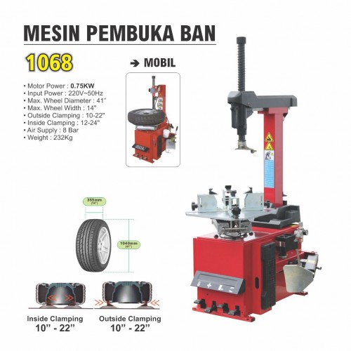 Motor Power : 0.75KW Input Power : 220V~50Hz Max. Wheel Diameter : 41” Max. Wheel Width : 14 inch Outside Clamping : 10-22 inch Inside Clamping : 12-24 inch Air Supply : 8 Bar