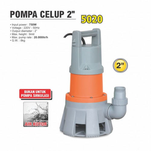 Input power : 750 W Voltage : 220 V - 50 Hz Output diameter : 2” Max. height : 9 mtr Max. pump rate : 20000 ltr/h G.W. : 8 kg