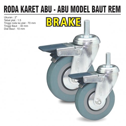 Tebal plat : 1.5 Tinggi roda ke plat : 70 Tinggi baut : 30 Dia baut : 10