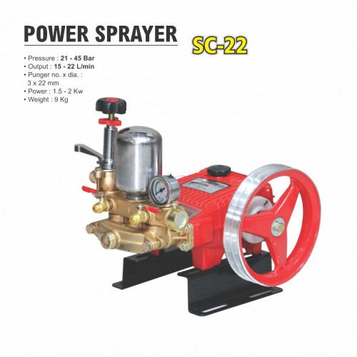 Pressure : 21 - 45 Bar Output : 15 - 22 L/min Punger no. x dia. : 3 x 22 mm Power : 1.5 - 2 Kw