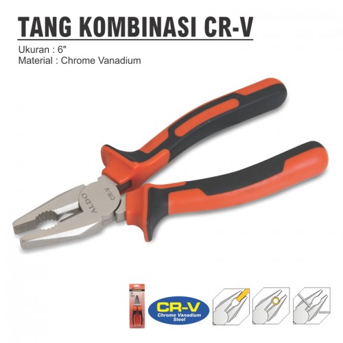 Tang kombinasi dengan dua fungsi, jepit dan potong. Dengan kepala tang yang tebal dan kuat sehingga dapat memotong komponen padat seperti kawat, kabel, dan komponen elektronik lainnya. Material : Crome vanadium steel