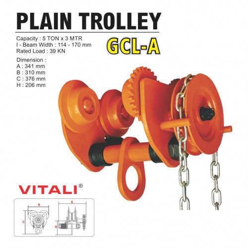 Capacity : 5 ton x 3 mtr I - Beam width (mm) : 100 - 180 Net weight (kg) : 39 Rated load (kn) : 62.5 Quantity : 1 pcs / dos