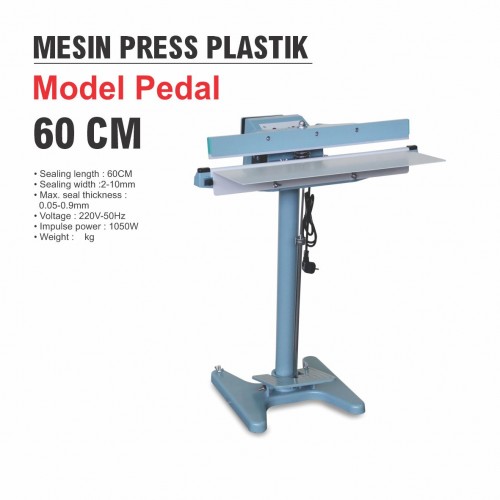 Sealing length : 60cm Sealing width : 2-10mm max seal thickness : 0.05 - 0.9mm Volatge : 220V-50Hz Impulse power : 1050W