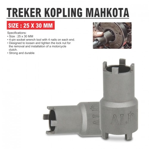 Specifications: • Size : 25 x 30 • 4-pin socket wrench tool with 4 nails on each end. • Designed to loosen and tighten the lock nut for the removal and installation of a motorcycle clutch. • Strong and durable