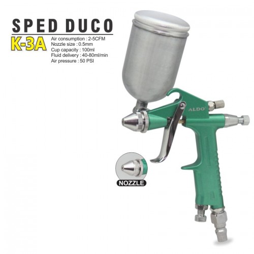 Kapasitas Tabung : 100ml Air consumption : 2-5CFM Nozzle Size : 0.5mm Cup Capacity : 100ml Fluid Delivery : 40-80ml/min Air Pressure : 50 psi