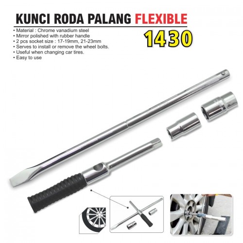 • Material : Chrome vanadium steel • Mirror polished with rubber handle • 2 pcs socket size : 17-19mm. 21-23mm Untuk Mengecangkan dan Kendorkan baut yang ada pada Roda