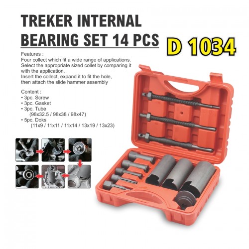 Four collect which fit a wide range of applications. Select the appropriate sized collet by comparing it with the application. Insert the collect, expand it to fit the hole, then attach the slide hammer assembly Set includes: 3pc. Screw 3pc. Gasket 3pc. Tube (98x32.5 / 98x38 / 98x47) 5pc. Doks (11x9 / 11x11 / 11x14 / 13x19 / 13x23)