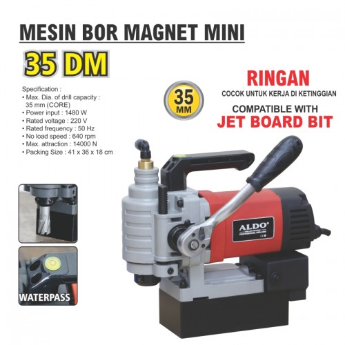 Specification : • Max. Dia. of drill capacity : 35 mm (CORE) • Power input : 1480 W • Rated voltage : 220 V • Rated frequency : 50 Hz • No load speed : 640 rpm • Max. attraction : 14000 N • Packing Size : 41 x 36 x 18 cm