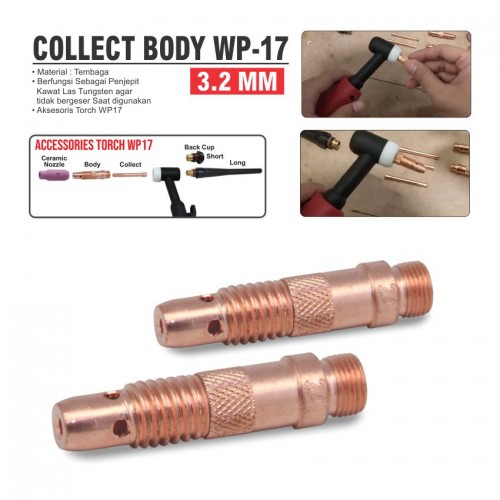 • Ukuran : 3.2mm • Material : Tembaga • Berfungsi Sebagai Penjepit Kawat Las Tungsten agar tidak bergeser Saat digunakan • Aksesoris Torch WP17