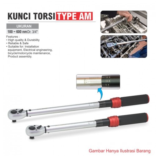 • Size : Ukuran (3/4") 100-600 NM • High quality & Durability • Reliable & Safe • Suitable for: Installation equipment, Electrical engineering, bicycle/motorcycle maintenance, Product assembly