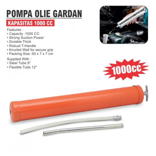Features : • Capacity :1000 CC • Strong Suction Power • Durable Thick • Robust T-Handle • Knurled Wall for secure grip • Packing Size :50 x 7 x 7 cm Stell tube g • Flexible Tube 12"
