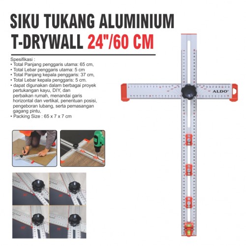 Spesifikasi : • Total Panjang penggaris utama: 65 cm, • Total Lebar penggaris utama: 5 cm • Total Panjang kepala penggaris: 37 cm, • Total Lebar kepala penggaris: 5 cm. • dapat digunakan dalam berbagai proyek pertukangan kayu, DIY, dan perbaikan rumah, menandai garis horizontal dan vertikal, penentuan posisi, pengeboran lubang, serta pemasangan gagang pintu, • Packing Size : 65 x 7 x 7 cm