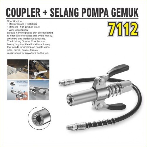 Specification : • Max pressure : 10000psi • Material : #45 Carbon steel • Wide Application: Double handle grease gun are designed to help you end waste and avoid messy, awkward and ineffective greasing. The Locking Grease Coupler is a heavy duty tool ideal for all machinery that needs lubrication on construction sites, farms, mines, forests, repair shops or anywhere on the job.