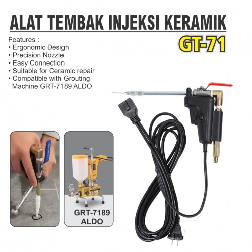 Features : • Ergonomic Design • Precision Nozzle • Easy Connection • Suitable for Ceramic repair • Compatible with Grouting Machine GRT-7189 ALDO