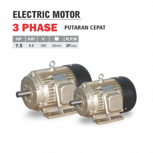 H/P : 7.5 KW : 5.5 V : 380 As : 38 mm R.P.M : 2P 2800 Quantity : 1 pcs