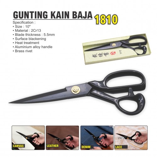 Specification : • Size : 10" • Material : 2Cr13 • Blade thickness : 5.5mm • Surface blackening • Heat treatment • Aluminium alloy handle • Brass rivet
