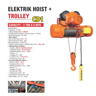 AL-ELEKTRIK HOIST CD1+TROLLEY 3 TON X 6 MTR